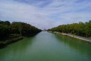 Sicht von der Brücke Trauttmansdorffstraße in nörliche Richtung mit Blick auf den neuen Radweg auf der östlichen Seite vom Kanal.