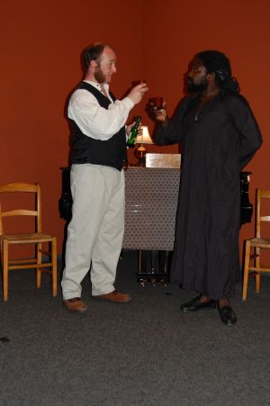 Marcell Kaiser und Komi Togbonou in einer Probe zu „Der Spinnemann“ (2009) (Foto: Ingrid Siemer / Stadtbücherei Münster)